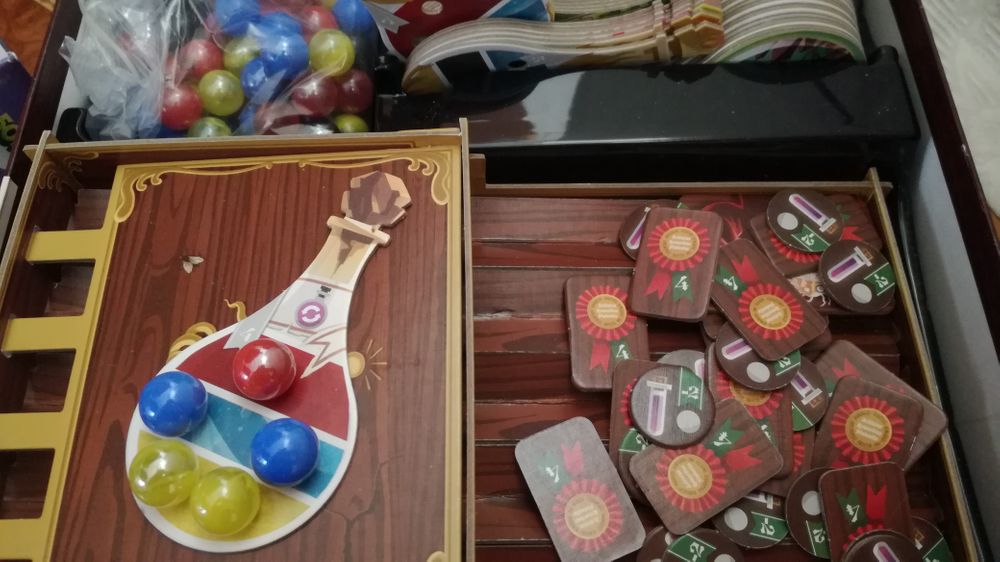 Зато в Лабораторию играть не скучно, даже свойства зелий старается использовать. Но играет всё же в тандеме с кем-то из нас. Сама предлагает эту игру. Как и Ресторацию монстров предлагает, играя под руководством. А в Loonacy любит играть самостоятельно, хоть и не успешно в сравнении со взрослыми. Парадокс:почти все остальные игры на скорость реакции отвергает, а эту - нет. Хотя может и не парадокс, а правило "запретного плода", ведь говорим что-то вроде "не надо тут рисунки не детские и вообще…"
