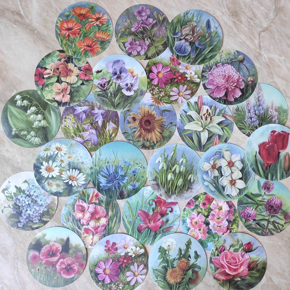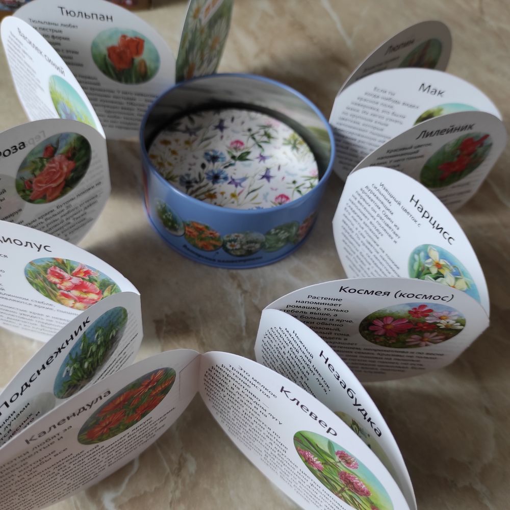 Обожаю эту коробочку, карты кругленькие, ровные, гладкие и плотные. Рисунки акварельные, очень нежные и красивые.