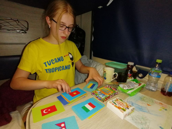 Морковкина, спасибо что заглянули) Игры взяла хорошие, но не хватало рисуй-стирай, именно в дороге, возьму в следующий раз обязательно. Дочь хотела уже везти с собой большие коробки) Сейчас увлеклась игрой Вокруг света за 80 дней, но я предупреждала, что туда на машине, а обратно на поезде, это было решающим фактором. Здесь я не написала про Шар навылет, вот дети в нее играли, но я бы отнесла эту игру к малоподвижным, а не настольным. А хитом были Дуббль и Соображарий. Сейчас дочка в активном поиске игр в лагерь, чтоб и себе новинка, и другим понравилось