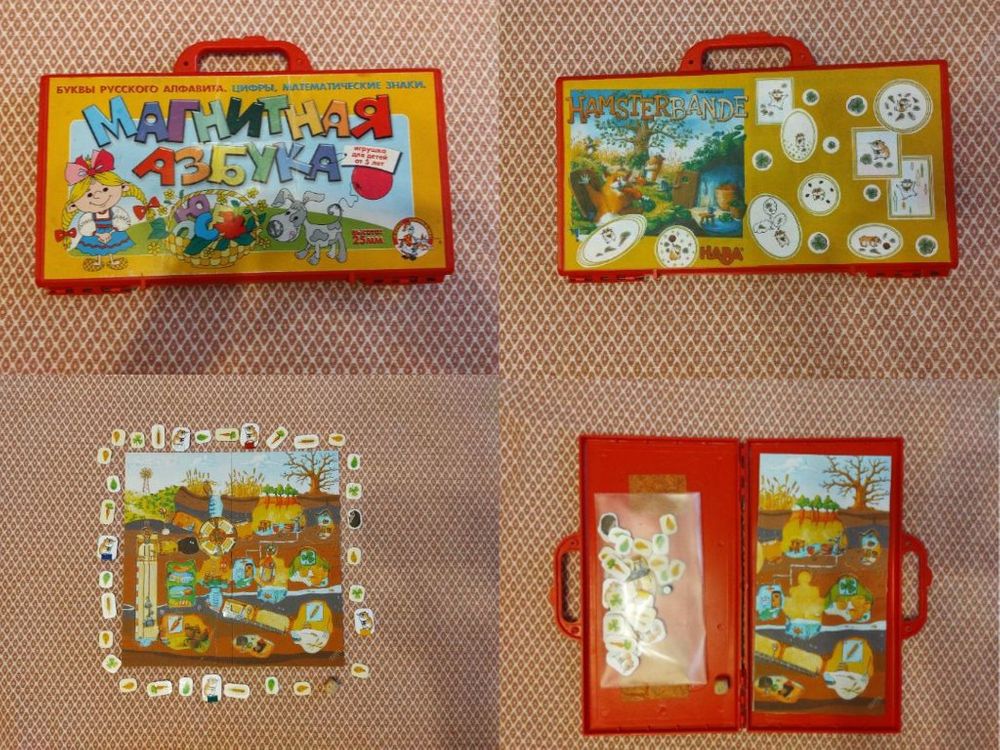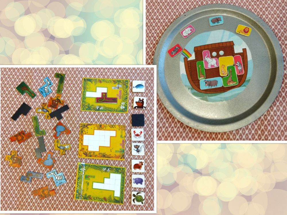 Самые магнитные - Ноев ковчег и Убонго Джуниор. Хоть были некоторые сложности с изготовлением деталей из мягкого магнита и в итоге они вышли довольно нежные, но именно магнитный эффект в этих играх важен - картон совсем не то. Ноев ковчег еще и обладатель самого железного компонента, так как в основе его старый поднос.