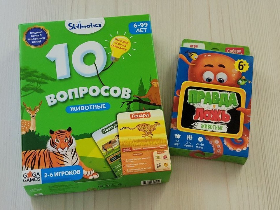 10 вопросов нравятся больше, мы и дома иногда в эту коробку играем с детьми. Страны я брать с собой не стала, в них нам сложно играть без вспомогательных средств (карты, атласа), а в Животных сыграли отлично – команда родителей против команды детей. Победителей нет, просто весело провели время, много смеялись, доставали эту коробку на пути и туда, и обратно. Однозначно будем играть еще и потихоньку осваивать «Страны».