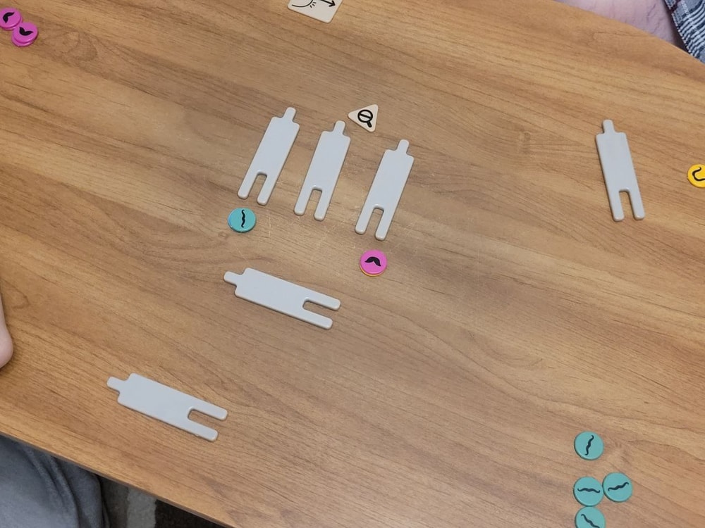 В игре нужно определить, кто убийца, это одна из трех фишек в центре стола, но посмотреть можно только две и сделать выводы. Нужно следить, кого выбрали другие игроки, вспомнить, какие фишки среди подозреваемых не лежат и т.п. Иногда получается просто наугад, иногда можно что-то просчитать. В любом случае нужно сделать так, чтобы взять как можно меньше штрафов, а для этого не всегда обязательно указывать на убийцу. В общем, забавная развлекательная игра на просчет и удачу, чем-то мне напоминает Тайное послание, только раунды очень быстрые. Игра длится или 7 раундов, или до 5 штрафов у одного игрока. Я всегда рада в нее сыграть.