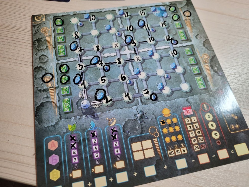 В первый уровень сыграли много раз, пока он самый любимый из трех. Удобен тем, что даже не надо считать очки – кто взлетел, тот и победил. Цели приносят настолько мало очков (чаще к тому же бесполезных), что мы даже не стараемся их выполнять. Второй уровень (полет на Луну) не впечатлил никого, сыграли раз или два и больше к нему не возвращаемся. Третий интереснее, тут совсем другие цепочки чисел, их составить посложнее, быстрее заканчиваются варианты. На этом уровне я люблю использовать «календарики», они хотя и приносят отрицательные очки, но позволяют занять дополнительную ячейку. Таким образом можно заполнить все ячейки. Отличная игра, будем продолжать, постараемся сыграть во все 8 разных миссий.