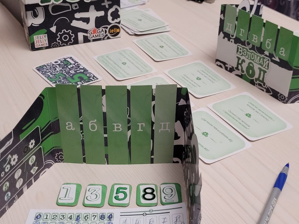 В дуэльной партии мы разгадали код на одном ходу, при игре втроем мы с дочкой сына опередили, он немного запутался. Но главное, что ему игра понравилась, значит будет играть еще. Он, как и я, любит такие игры, где нужно что-то вычислять. Заиграны 13 привидений и Дедукцио, но они простенькие. Легко дается Спасайся, кто может. Очень надеюсь, что и Взломай код будет у сына в фаворитах.