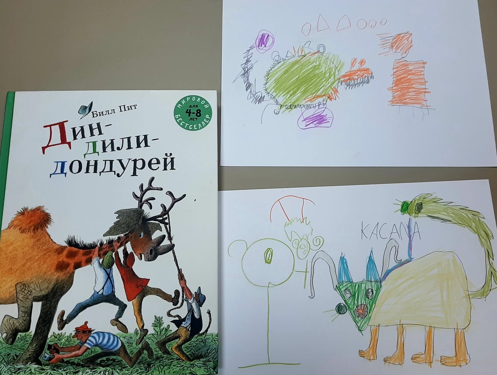 Книжно-игровое занятие по книге Билла Пита Дин-дили- дондурей издательства Мелик-Пашаев.Забавная и поучительная история про собаку, которая мечтала стать лошадью, чтобы люди восхищались ею и хвалили ее. Это желание услышала колдунья, но превратила собаку не в лошадь, а в странную смесь верблюда, слона, жирафа и зебры и назвала диковинное существо Дин-дили-дондурей.Книга с одной стороны, очень смешная, а с другой заставляет задуматься о том, как важно быть собой и принимать себя. И еще не додумывать услышанное)В книгах Билла Пита особое удовольствие- красочные рисунки, как будто мультик смотришь)