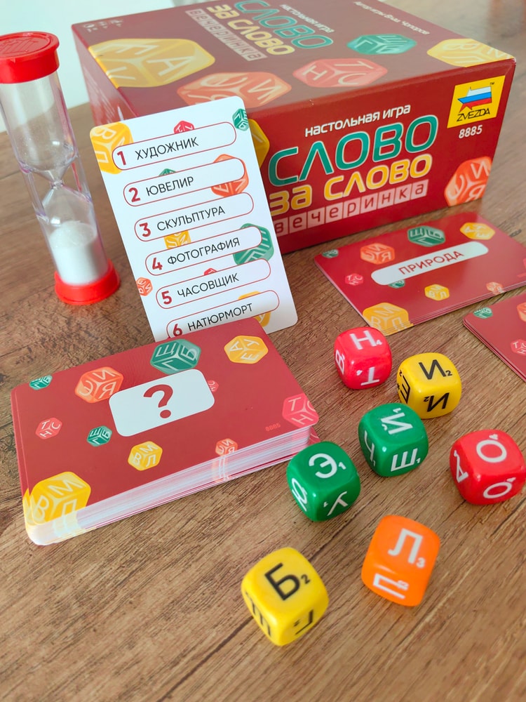 Слово за слово вечеринка - оправдывает свое название и действительно больше подходит для взрослой компании. Одна из многочисленных игр по угадыванию слов на скорость, в которой, на этот раз, нельзя называть слова, содержащие выпавшие буквы. И это оказалось весело, но непросто, мозг немного подвисает😁. С детьми, конечно, можно упростить, если брать только кубики с редковстречающимися буквами, потому что исключить, к примеру, буквы А или О ну очень сложно!
