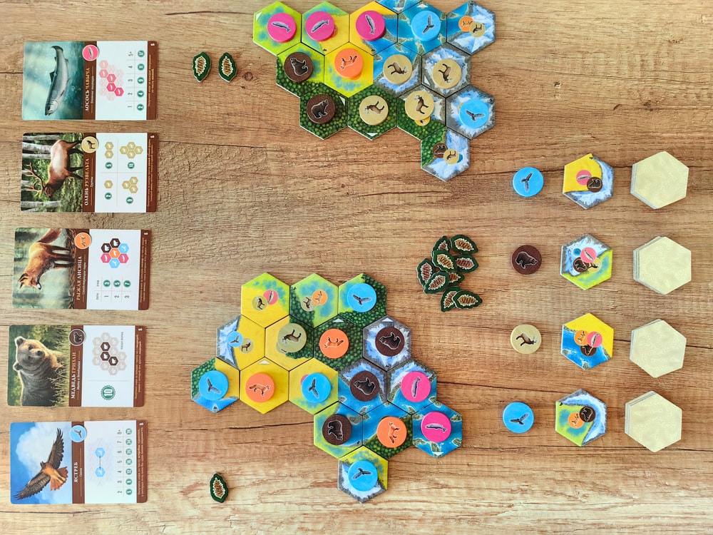 Каскадия - в топе любимых игр😍. Играем не так часто, как в некоторые фавориты, но всегда с огромным удовольствием! Куплены дополнительные наборы целей и доп Ориентиры. А вот из него мы используем только цели и новые тайлы с тремя типами местности. Сами ориентиры не прижились. Они усложняют процесс, а очков приносят столько же - нам это не понравилось, не увидели смысла менять шило на мыло. Возможно в будущем, когда игра приестся, ориентиры внесут что-то свежее и продлят ее востребованность.