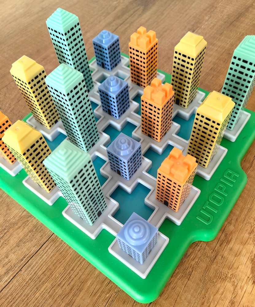 Головоломка Небоскребы не произвела впечатления. Хотя я люблю похожие на судоку задания, здесь мэтч не случился🤷. Мне кажется, мне просто надоело расставлять 16 домиков, а потом убирать их для каждого задания. Хотя исполнение головоломки безупречное - очень качественные и приятные поле и фигурки.