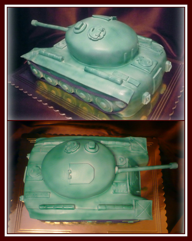 Торты на заказЭто мой первый торт-танк, предназначенный на трехлетие мальчика. На фото цвет получился бледнее, чем был на самом деле.