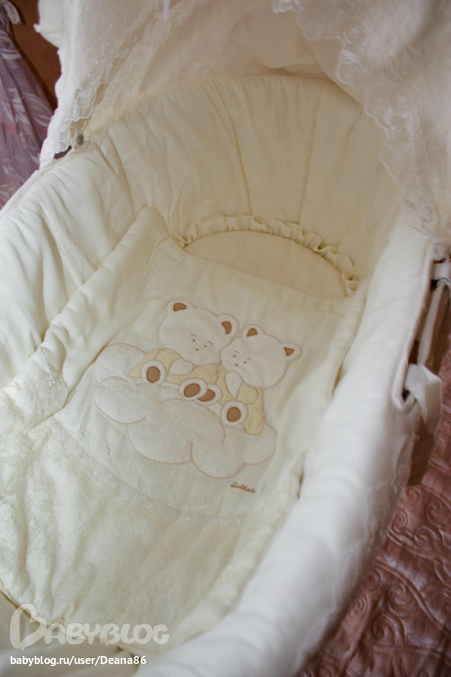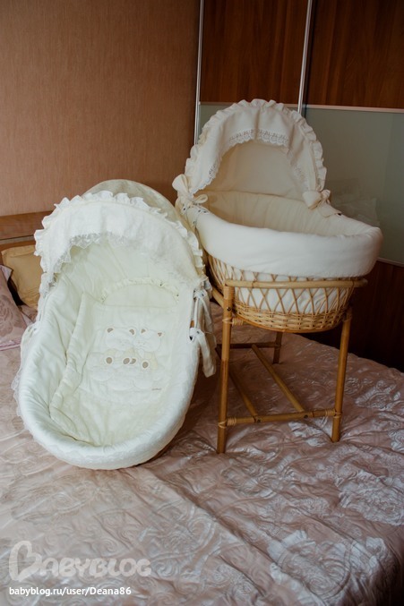 В комплект входит - чехол на корзину, матрас, подушечка и одеяло. Качество обалденное - все натуральное, даже кружева, состояние идеальное - пользовались очень аккуратно, подходят как для девочек, так и для мальчиков. Весь текстиль снимается и стирается отлично в стиралке при 30 градусах. Пока детки не переехали в 4 месяца в детскую, они спали с нами в комнате (мы за раздельный сон), и т.к. Кроватки бы не поместились в маленькой спальне, купили такие люльки и ни разу не пожалели. Очень удобные, особенно на первых месяцах жизни деток. Занимают очень мало места, легко передвигаются и переносятся. В начале часто придвигала к своей кровати, чтоб ближе вставать было. Деткам было очень комфортно и уютно. И еще один плюс- бамбуковые подставки мы использовали под люльки от коляски, когда детки спали на балконе ( у нас Тевтония). За две прошу 200$ без торга (их цену можете посмотреть в интернете и поймете, что я прошу очень мало), предпочтение мамам двойняшек :) перешлю Новой почтой. Место нахождение люлек- Одесская область. Тел. 0966840464