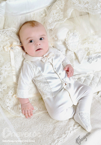 Комплект «Дантель» для мальчика.Комбинезон и чепчик для мальчика, состоящие из 100% хлопка трикотажного плетения. Декорированы итальянским кружевом и стразами Swarovski, атласом и галстуком-бабочкой.Состав - 100% хлопок.