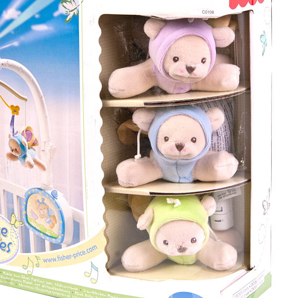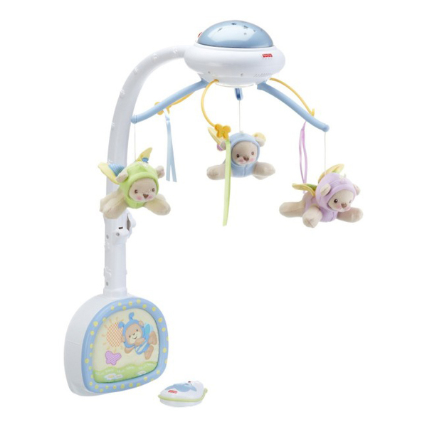 Еще продается мобиль Fisher Price "Мечты о бабочках". Функции: музыка/ночник/проектор. Много мелодий, в том числе звуки природы. Крепится как к кроватке, так и к столику, сложив крепление (на случай, если к кроватке неудобно).