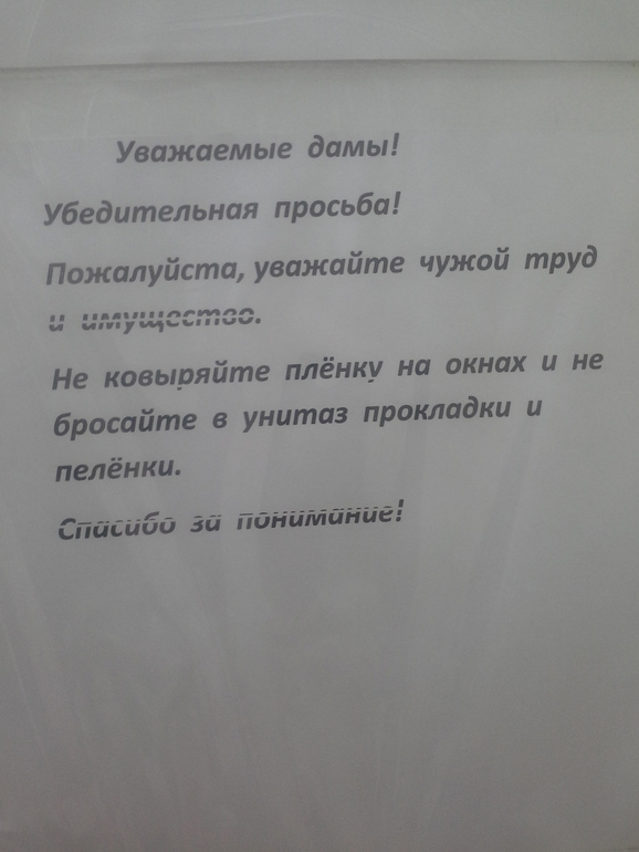 На сохранении/больничном, тонус, боли...Пролежала 2 дня в обычной палате и заболела в субботу орви с темпой 37. Сегодня более менее оклемалась и температура спала, но орви 5 дней минимум наверное, нос еще закладывает. Тут толком не лечат, терапевт прописал витамин С шипучий+аквамарисом нос промывать. И еще одели на меня маску и перевели на инфекционный этаж, чтобы никого не заразила. Также врач сказал, что с орви ер опасно осложнениями для роженицы. Да и кесарево больным лучше не делать, так что делаю все что могу сейчас, чтобы через 3 дня вернуться в строй. И немного больничного юмора. Вот чтоу меня в туалете написано.