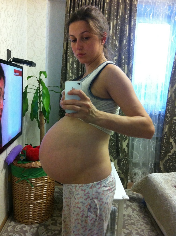 Чувствую себя нормально, но передвигаться уже тяжело.. Болит спина и промежность (пардон;). Из диагнозов: прележание плаценты, низкий гемоглобин и шов после первого КС. Хотели госпитализировать-отказалась. Обещала лежать дома и приходить каждую неделю на прием. Наблюдаюсь в ЦПСиР. Врачами довольна, рожать там же буду. Ну и фото;)