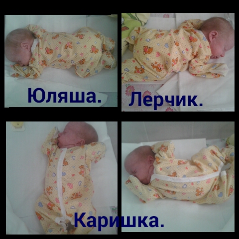 Вес у девочек,как только перешли на рожок практически не двигается,мне сказали это норма,малышки кучу энергии тратят на сосание и обещали,что через неделю снова начнут набирать вес))) Лера сейчас весит 2200, Каришка 2220, Юляшка 2140. Сегодня померили рост у всех по 46см)) Наш врач ходит и прикалывается на до мной, КАК ТЫ БУДЕШЬ ИХ ОТЛИЧАТЬ?? ОНИ ЖЕ АБСОЛЮТНО ОДИНАКОВЫЕ😂!!!! Это сейчас лежат каждая в своей кроватке,а дома положишь в одну и ВСЁ,потеряешь кто есть кто)))