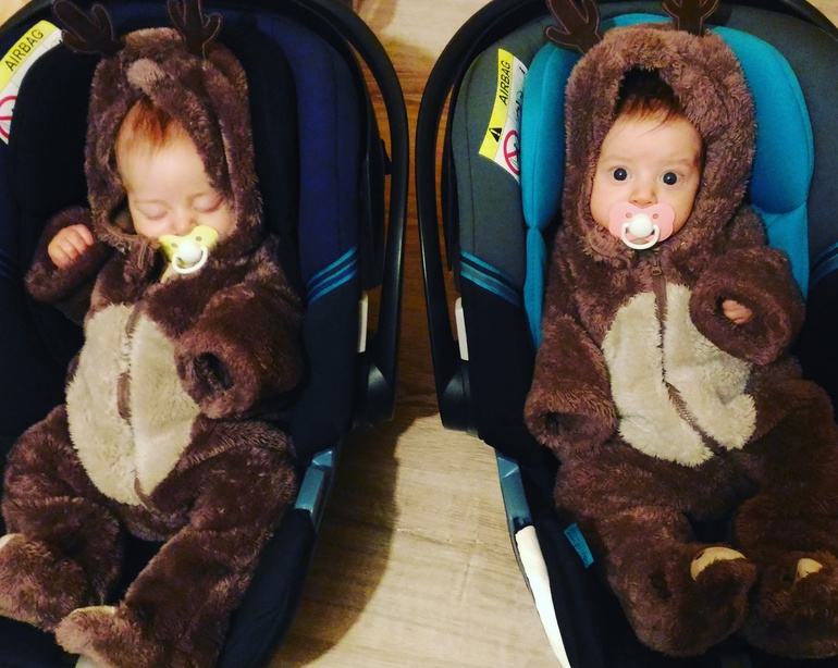 Спасибо, Светочка!про одежду-это случайность.Костюмчики оленей от Картерс достались вместе с креслами, а на чернобелом фото костюмы из Канц подарила моя мама.То, что я покупаю, все в едином стиле, но разное.мы и крестики им разные купили.Савелий вмегда в синем, голубом.Георгий в оранжевом, розовом (прикольно, кстати, мой брат меня подсадил на розовую, и его оттенков одежду доя пацанов) и тд. Одинаковая одежда еще и неудобна тем, что мои домашние путают ребят.Бабушка тут вообще сказала:"Я вот всегда знаю где кто.Справа всегда Савелий, слева - Георгий!!!!" У папы утро начинается всегда с вопроса:"Это кто?Савелий или Георгий???")))