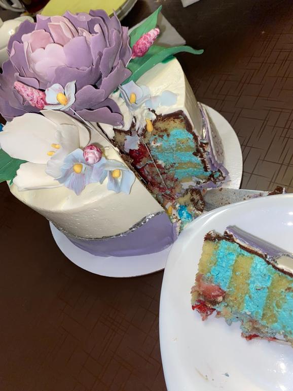 Извините , но не понятно почему внутри торта и синий и красный цвет? А вы пишите что 2 мальчика, что тогда означает красный цвет?