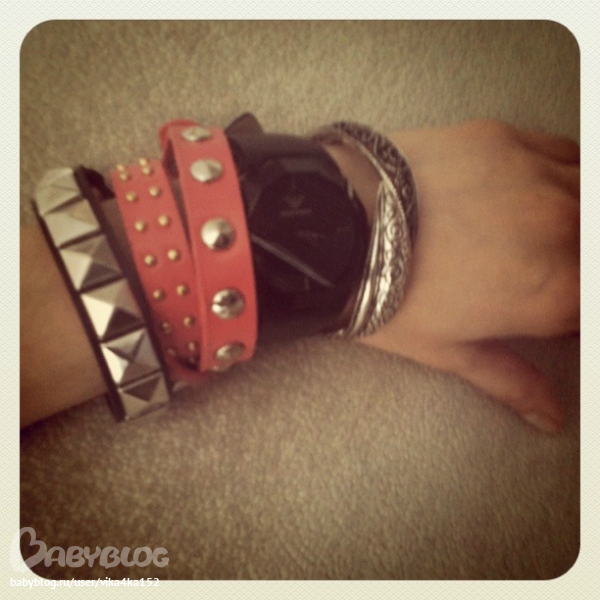 я как цыганка уже-гремлю)) еще часами это дело, как и ты, перемежаю-и вперед. сын любит поковыряццца в них во всех. Подариили недавно мужу туалетную воду Бербери, Спорт линей какая-то, на флакон натянута красная резинка с лого и надписью Бербери-я ее как-то нацепила на руку-селикон такой приятный -и забыла) так и ходила несколько дней))) браслеты-это бомбаааа))