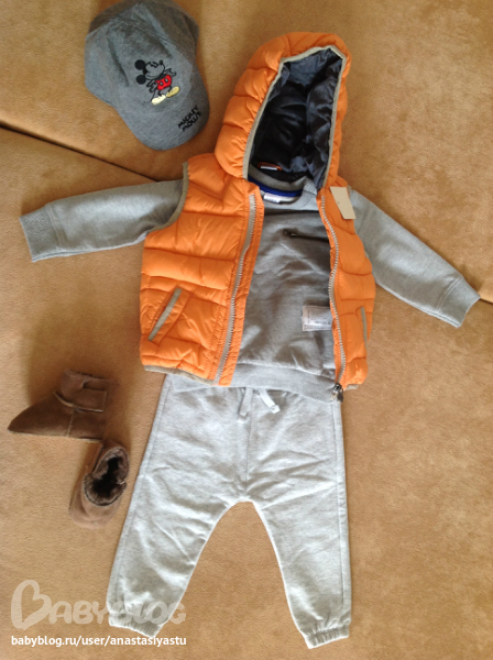 на прохладную осень у нас костюмчик такой, типа махрового и вязаные костюмчики. на ножки кроссовки-пинетки и джинсовые штаники. вот на время, когда в зимнем еще жарко, а в осеннем уже холодно, не знаю что брать((((((((((((наверное, в H&M буду курточку брать. а на ноги тоже не знаю что(((((((