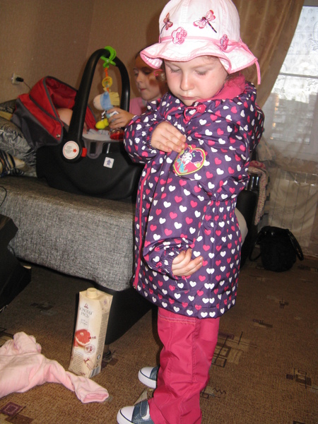 Купили сегодня Дашуле.Долго искали-выбирали...но ничего подходящего,красивого и тд.А цены-мамадорогая((Эти приглянулись!Подходят ли к шапочке?(плащ у нас сиреневый с розовыми и белыми сердечками-фирма как Шапка!)