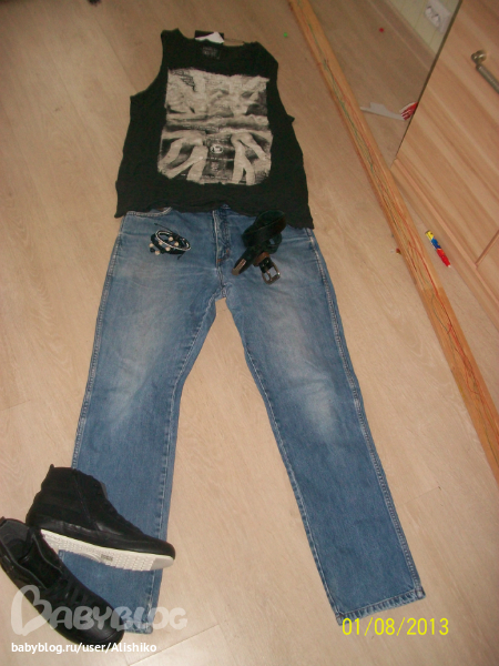 можно что-то белое в черным рисунком, не в обтяжку, а еще фенечек побольше, железяк))