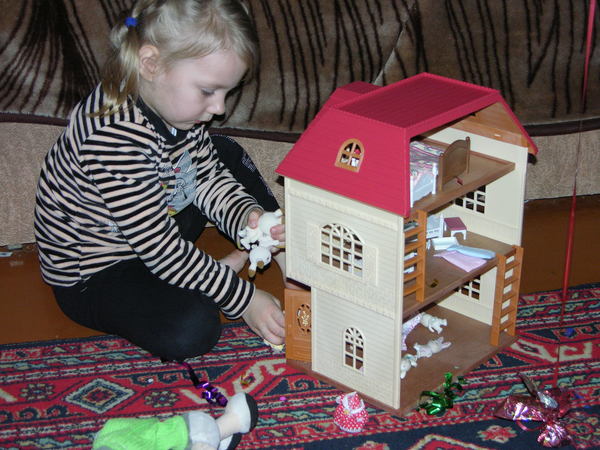 Нам на 2 года подарили, просто супер! Ее оттуда не вытащить :) единственное, я мелкие детали все убрала, оставила только мебель и животных. Этот дом реально очень крутой)) сама иногда с дочкой играю!