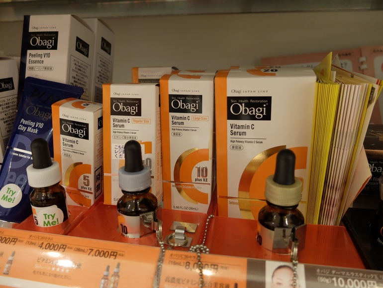 Еще один японский косметический зубр - Обаги. Новинка - сыворотка с Витамином С. Попробовала на себе, в Токю Хэндс консультант долго пытался привлечь мой взор этим новым средством, размазывая его по руке и предлагая понюхать, и когда я сказала, что ничего не чувствую, она дала мне ощутимый пробник в подарок :)
