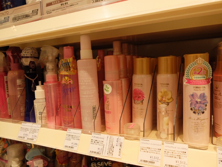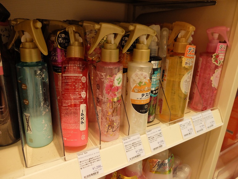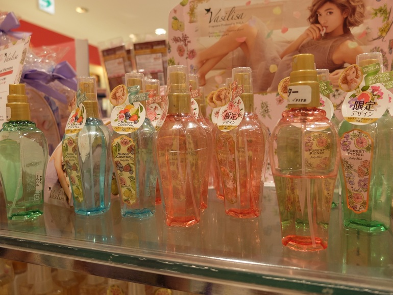 Духов в обычных драг-сторах не найти, но вот ароматной водички, которая создает возле тебя ареол запаха и быстро выветривается, очень много. Ароматы, в основном цветочные.