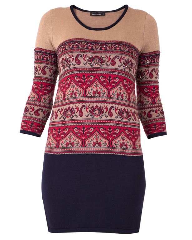 Если есть желание визуально вытянуть фигуру и добавить стройности — то темно-синие в тон низа.Если фигура в коррекции не нуждается — то бордовые или телесные.У меня платье наподобие — ношу его с коричневыми колготками (но там на платье присутствует этот цвет) в тон сапогам.