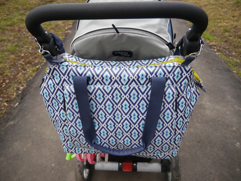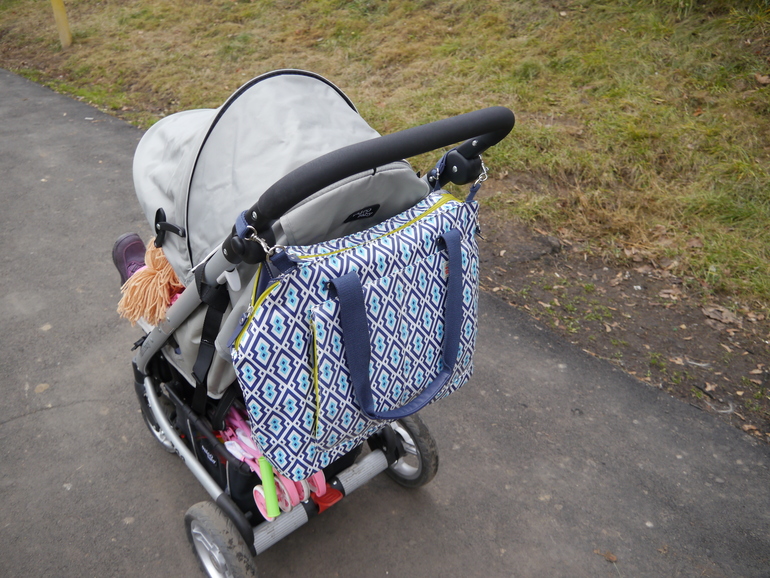 У нас коляска - Valco Baby Zee (моя любимица и на 100% помощница) - вот как сумка крепится к коляске и смотрится.