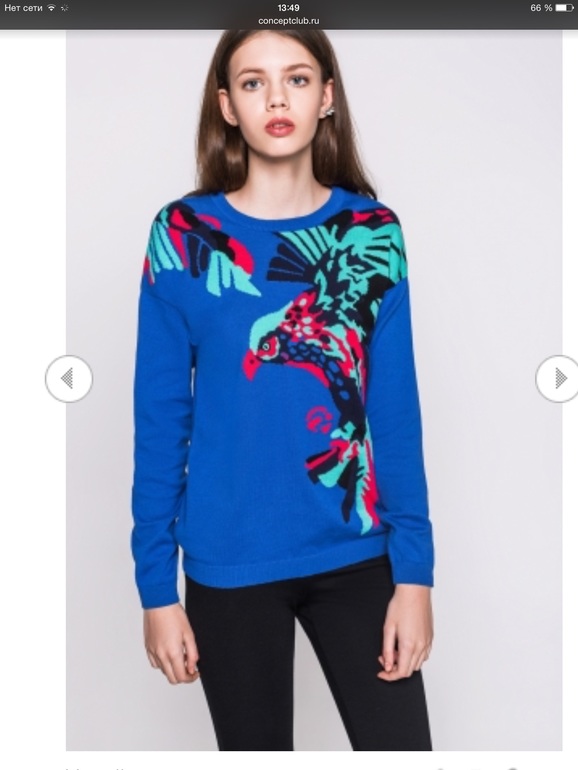 Возможны варианты. брюки юбки могут быть одного из цветов на свитере — синий, розовый, бирюзовый. Это по правилу цветосочетания, но выбирать по ситуации, времени года и фигурке) Плохо видно, в декоре это темно синий или черный?