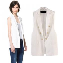 Очень актуальна линия, которою развивают дизайнеры, приверженные стилю «минимализм». Это удлиненные до бедер модели жилетов, напоминающие жакеты без рукавов. Наличие лацканов, прорезных или накладных карманов в сочетании с полуприталенным или прямым силуэтом придают таким жилетам очень элегантный и в тоже время непринужденный вид. Вернувшиеся в моду подплечники только усиливают общее впечатление.