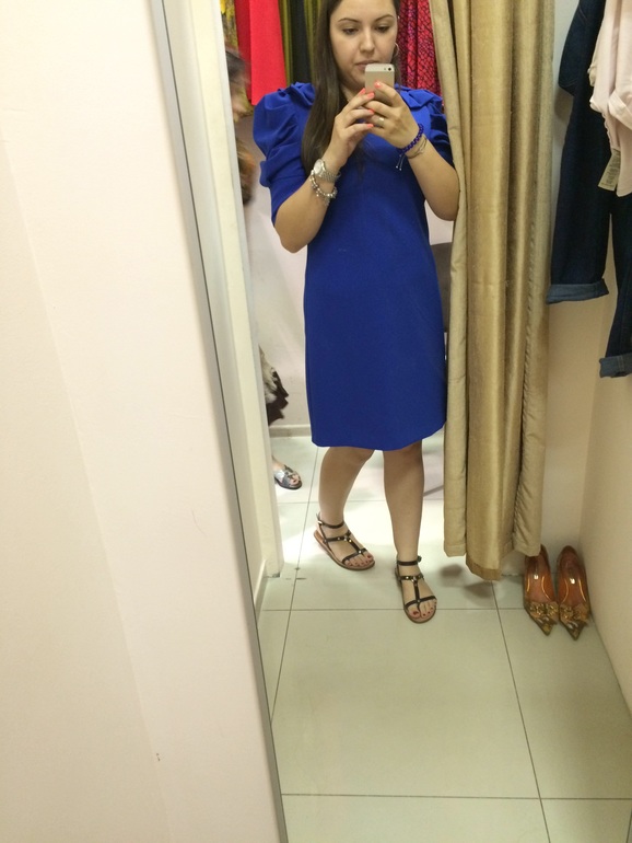 Я в прошлом году на свадьбу к брату мужа делала такую прическу. У меня тоже было синее платье похожее, только плечи тоже прямые — классика. Очень хорошо смотрелось)