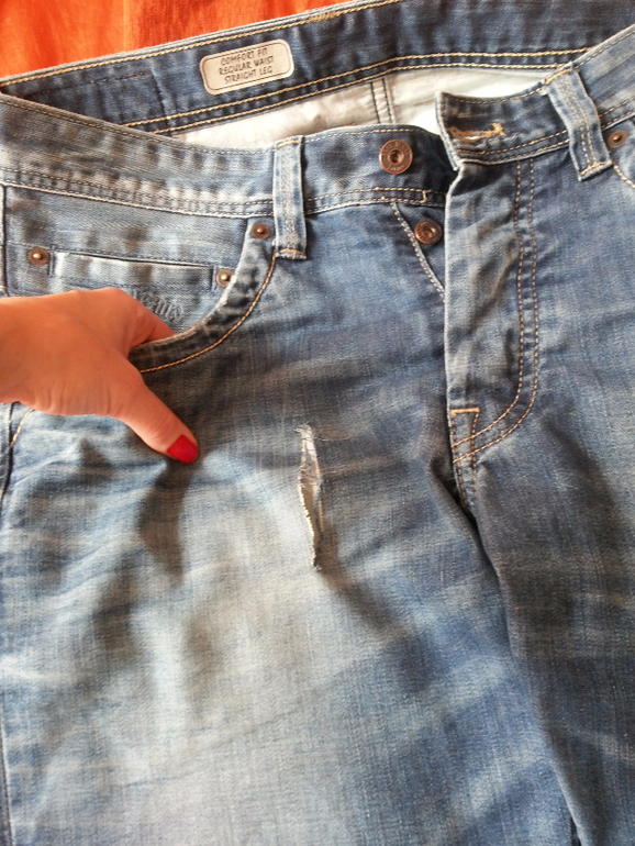 ПосоветуйтеМуж порвал свои любимые джинсы Pepe, как умудрился -загадка....Имеет ли смысл нести в ателье, или только на выброс теперь? Не представляю, что можно с ними придумать, ладно бы порез был горизонтально, а этот вертикально....( P.S. извините, если выбрала не правильную категорию))))