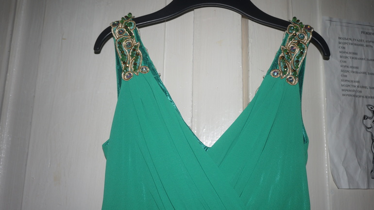 платье куплено... модель как это,цвет ярко-зеленый и на плечах и по вырезу спинки расшито камешками разноцветными...