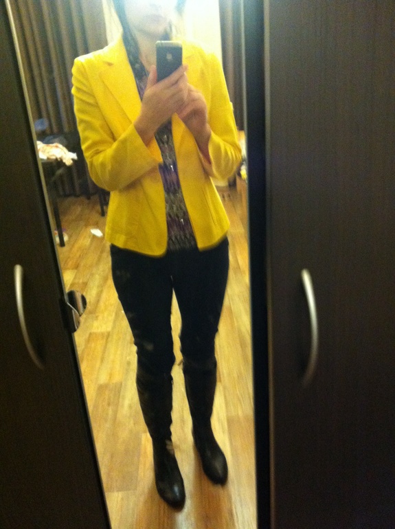 Осьавить только желтый пиджак и последнюю юбку, только пояс с бантиком выкинуть.