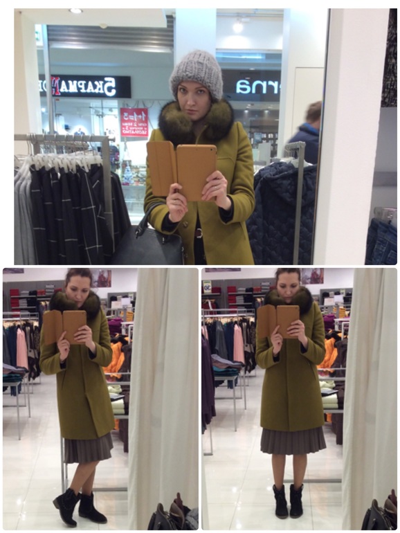 Ань, что то шапка на вас эта не нравится и с этим пальто. Я бы делала так, добегала на работу в брючках, а потом юбочку одевала. Длина пальто ни туда ни сюда