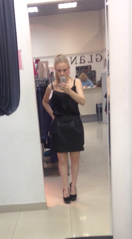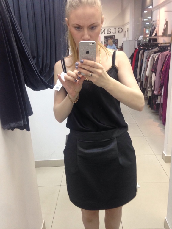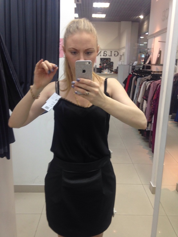 Посоветуйтетак мне понравилась маечка, но я не купила ее, тк не знаю, с чем ее можно одеть...если не брюки. Юбку..а какую? Фотка почти передает, но не до конца. Юбку меряла тоже, но, понятно, что их вместе нельзя.
