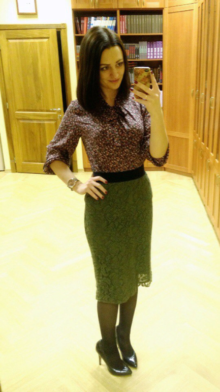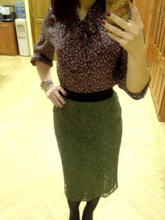 Мне кажется не сочетаются блузка в цветочек и кружевная юбка. Юбка мне нравится и сидит на Вас хорошо.