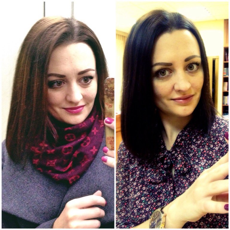 Я вчера покрасилась, а то цвет был неравномерный и тусклый. Чуть подсмоется и не буду такой темной. А в среду иду стричься, покажусь после ))