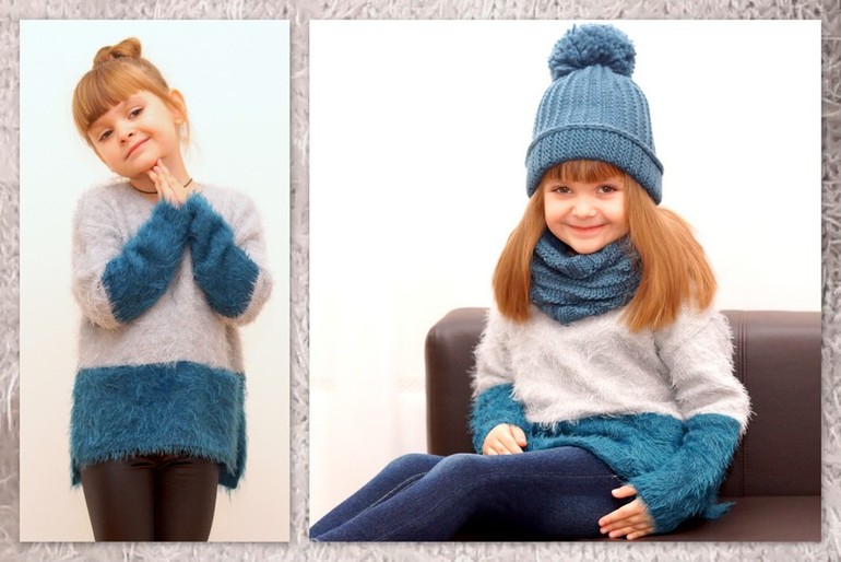 первый вариант вообще бомба-так идет Даше такая цветовая гамма, а второй...если честно не люблю ворсистые лохматые свитера)) в общем на любителя они)..а шапочка хорошенькая.