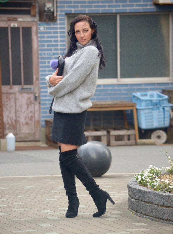 С короткой юбкой образ очень нравится. Высокие сапоги, длинные ноги...ммм...