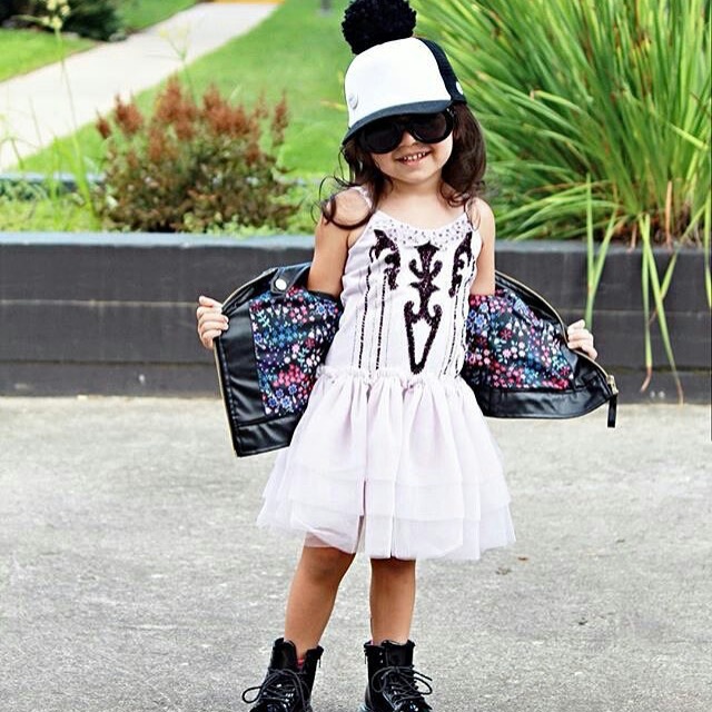 А если надеть какие-нибудь тяжелые ботинки с гетрами, на ноги лосины, желательно, чтобы на коленях были звезды или сердца, что-нибудь яркое. Юбку пачку, чем пышнее тем лучше. Нейтральный по цвету топ (светло-серый, нежно-голубой, бледно-розовый, мятный (в зависимости от цвета лосин), можно с натписью ...(бывают такие "я - супер-звезда"...на английском, или другая позитивная надпись). И согласна с комментариями ниже по поводу косухи.