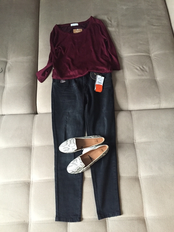 Это очень простой комплект. К нему я хочу, просто брежу, сумку и палантин Gucci. С цветами. Но это по нынешним временам для меня просто невыполнимо. Поэтому буду искать замены. Пока так. Кофта и джинсы Stradivarius, лоферы ХМ.