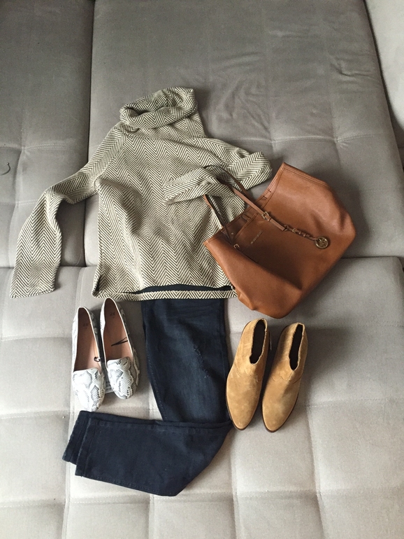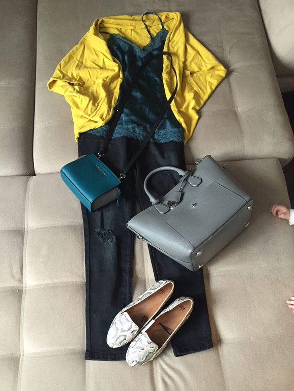 Немного скучноватый комплект. Но имеет место быть: быстро, удобно, практично. Кофта, джинсы, ботинки Stradivarius, лоферы ХМ, сумка Michael Kors, еще из старых запасов.
