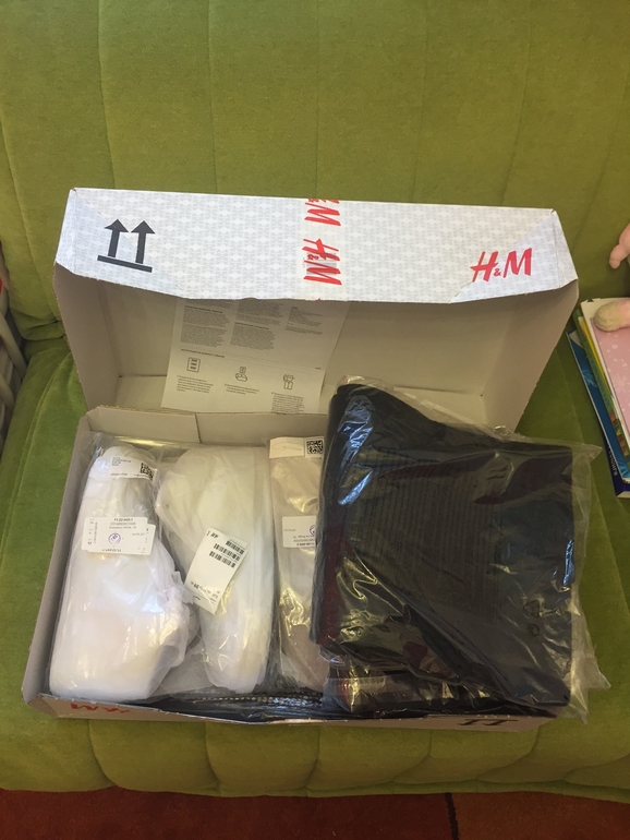 Все было хорошо упаковано. Обувь без коробок, конечно. Вещи из ХМ были все в пакетах, с упаковочной бумагой. Обувь, каждый ботинок, отдельно завернут.