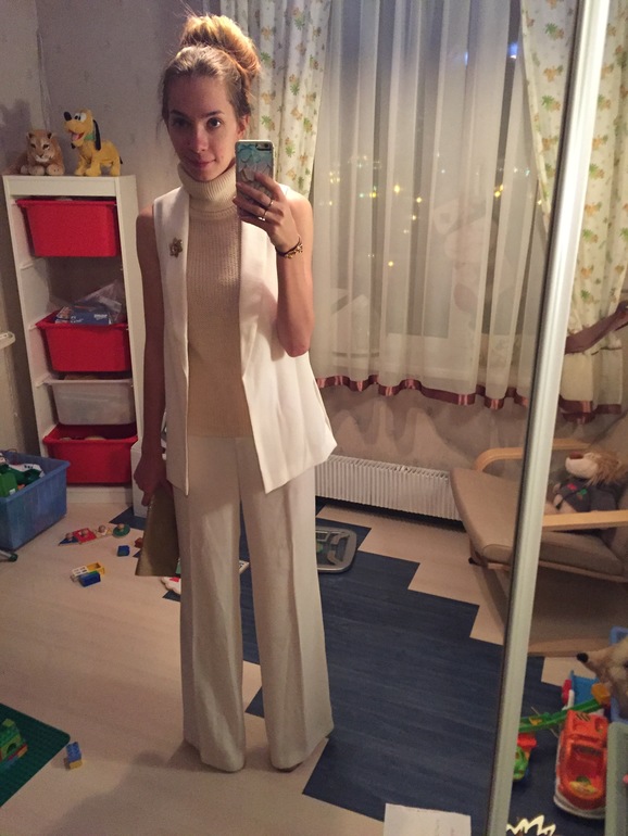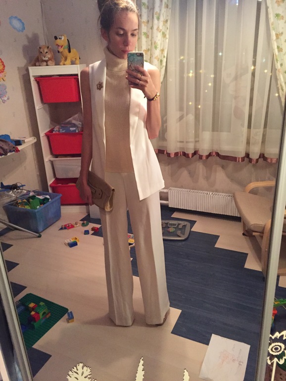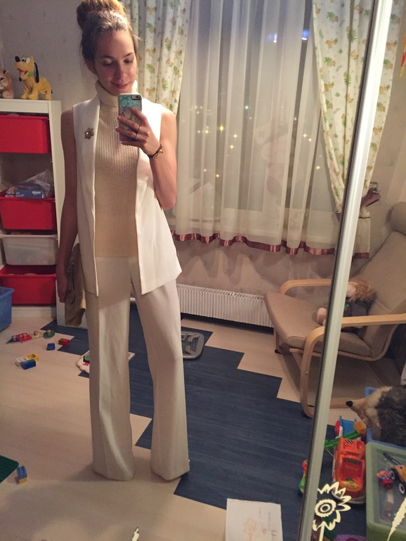 Ну и последний на сегодня лучок: штаны мои старые, отданные сестре, я вернула назад)2 года висели, и никак не находила к ним ансамбль. Но тут "стащила" мамину водолазку, которая ей мала и вообще виситместозанимает))