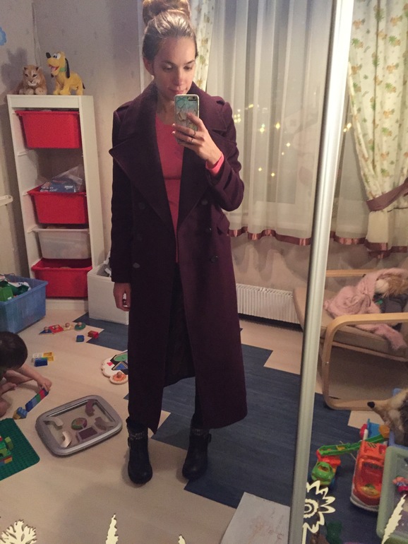 Пальто такооое теплое, уютное.. Вообще пробовала его с ботфортами - клево, но не сфоткала, потооом. А это с черными и у меня нет сумы( что-то мне такая понра, как вам?