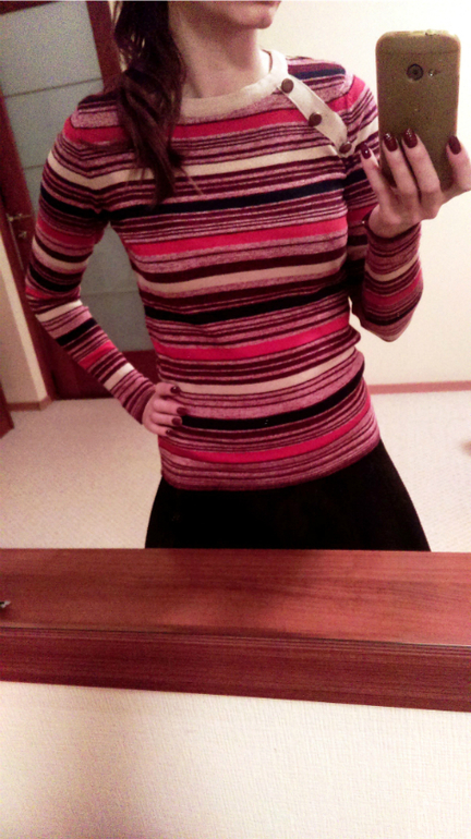 1. Эту майку хотела под теплую темно-синюю юбку, которую тоже заказывала в инете, теперь когда все сложилось, понимаю, что не то ))) под нее бы бордовую юбку, ну или красную, но увы ничего такого нет )))