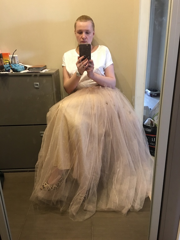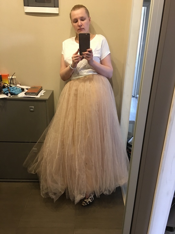 Ну что могу сказать, штука специфическая, кроме как для фотосессий применения ей я не придумала. Верх к ней заказала, пока едет, будем довольствоваться первой попавшейся футболкой)